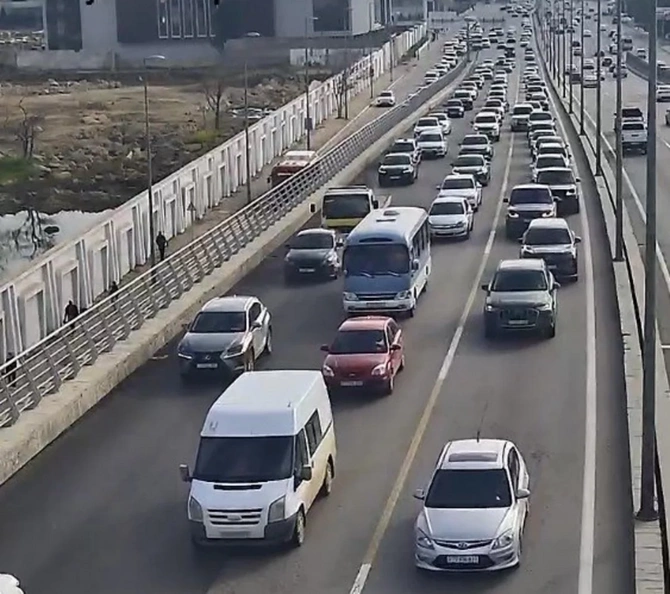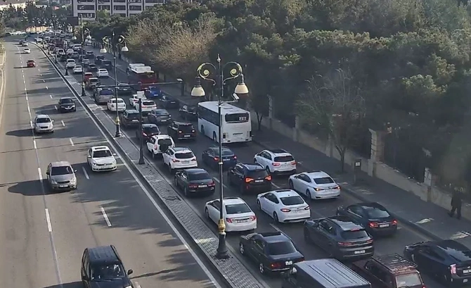 Bakının bir sıra yollarında nəqliyyatın sıxlığı müşahidə olunur.