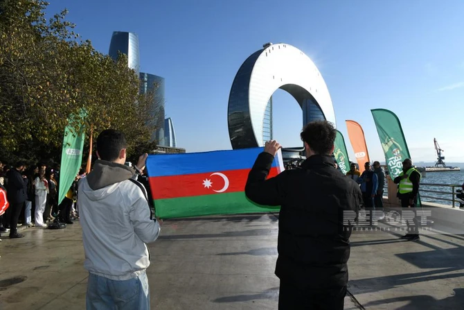 Qeyd edəki, yarışda iştirak edən gənclər və idman naziri Fərid Qayıbov da finiş xəttinə çatıb.