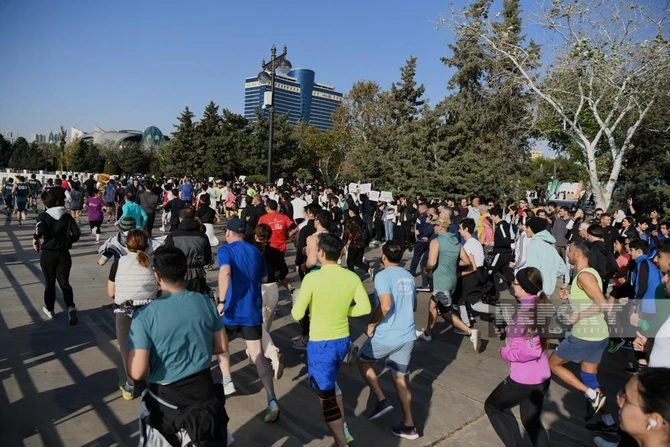 “Qələbə qaçışı”nın iştirakçıları Dənizkənarı Milli Parkda, “Yeddi gözəl” fəvvarəsinin yanından start götürüb. Qaçış 2 müxtəlif (5 km və 10 km) məsafəni əhatə edir və 10 km məsafədə finişə ilk çatan iştirakçılar qalib elan ediləcəklər.