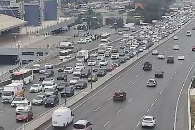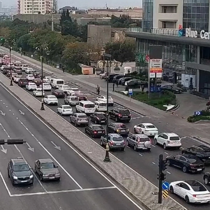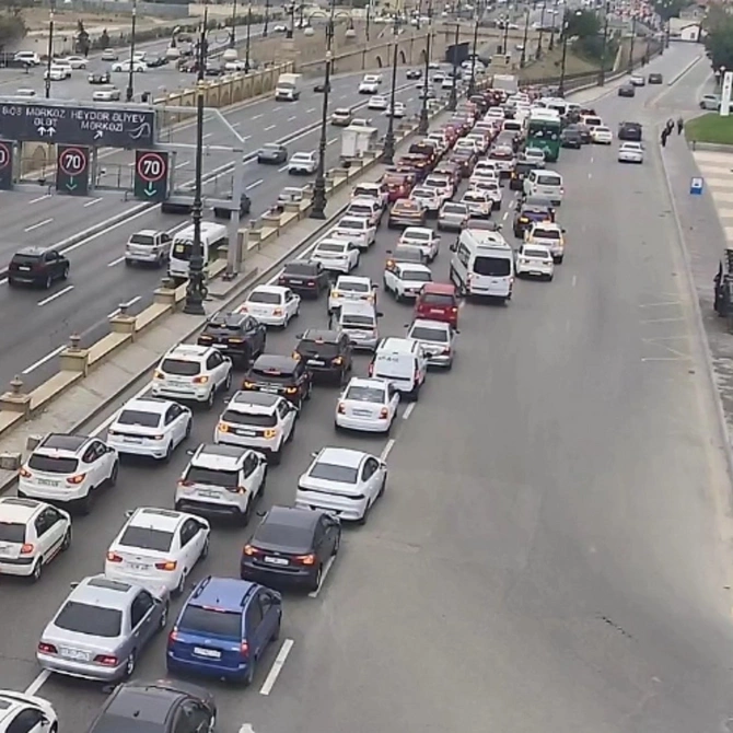 Bakının bir sıra yollarında nəqliyyatın sıxlığı müşahidə olunur.