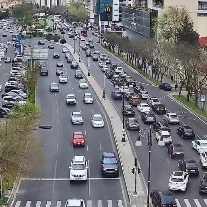 9. Ziya Bünyadov prospekti, Müzəffər Nərimanov küçəsi ilə kəsişmədən "20 Yanvar" metrostansiyası istiqamətində sıxlıq müşahidə olunur.