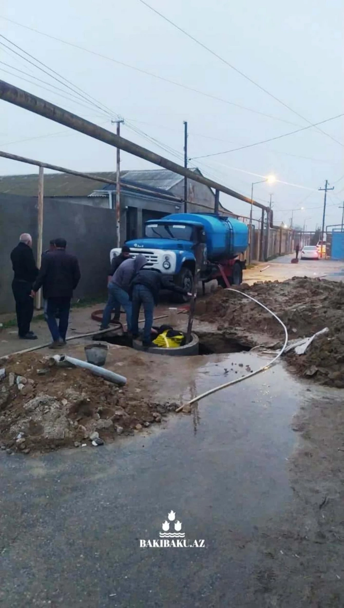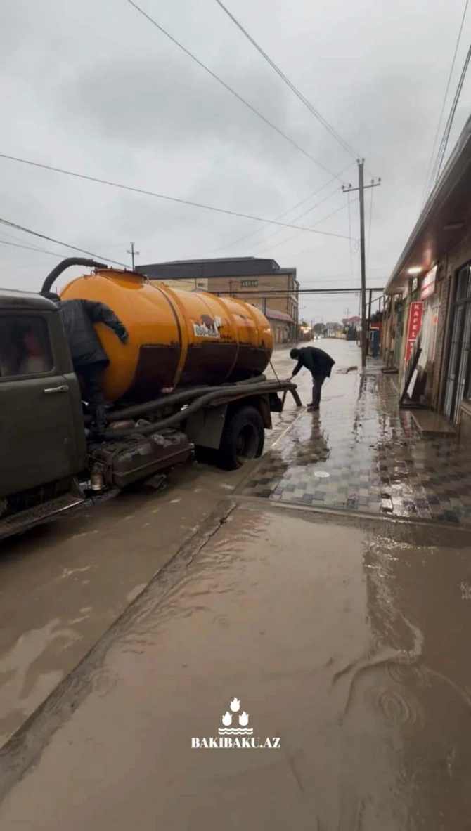 Məlumata görə, Bakının qəsəbələrində yağış fəsadlarının aradan qaldırılması davam etdirilir.