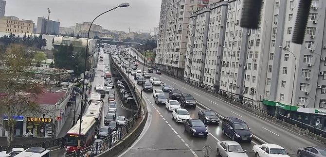 Bakının bir sıra yollarında nəqliyyatın sıxlığı müşahidə olunur.