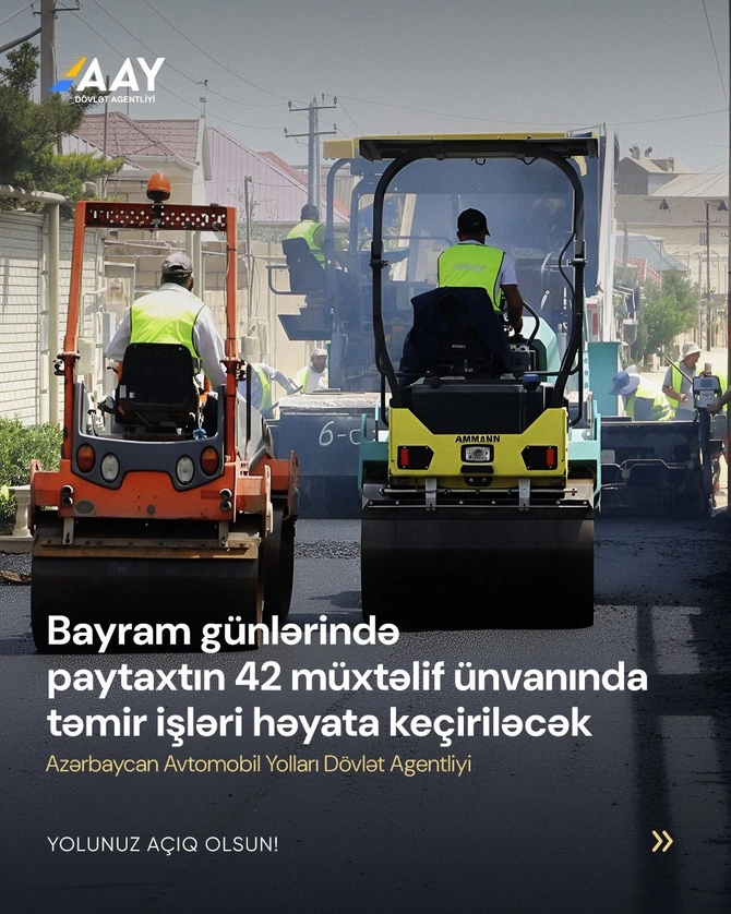 Sürücülərdən aparılan işlərə anlayışla yanaşmaları, təmir ərazilərində hərəkətdə olarkən diqqətli olmaları, yol hərəkəti qaydalarına və ərazilərdə quraşdırılacaq müvəqqəti yol nişanlarının tələblərinə riayət etmələri xahiş olunur.