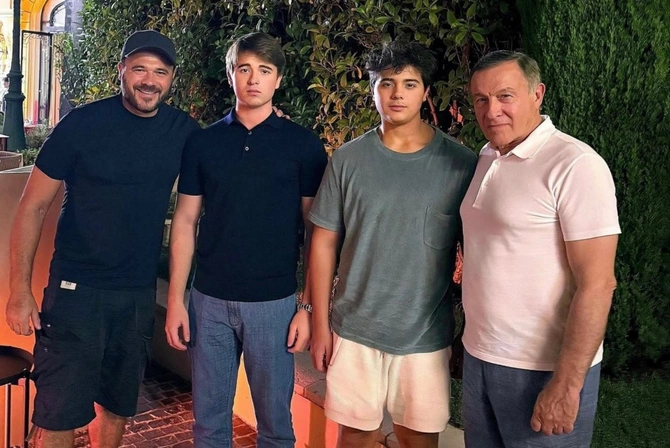 Xalq artisti Emin Ağalarov atası Araz Ağalarov, əkizləri Əli və Mikayıl, qızları Afina və Əminə ilə foto paylaşıb.