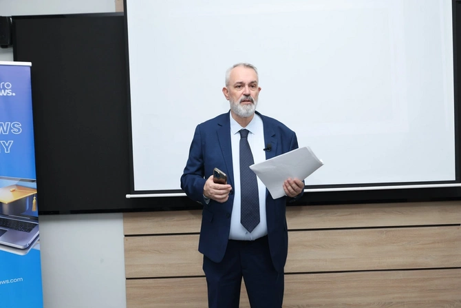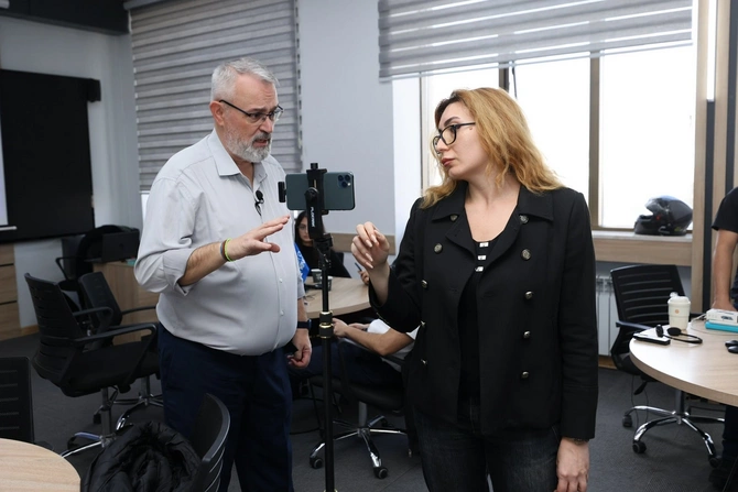 Təlim proqramının son günündə isə A. Tatsis "Mobil jurnalistika" mövzusu çərçivəsində iştirakçılara mobil telefon vasitəsilə operativ çəkilişin aparılması, kompozisiya və işıqlandırma üzrə düzgün yanaşmalar, səsin keyfiyyətli yazılması, eləcə də foto və videomaterialların mobil redaktə alətləri vasitəsilə işlənməsi qaydalarını izah edib.