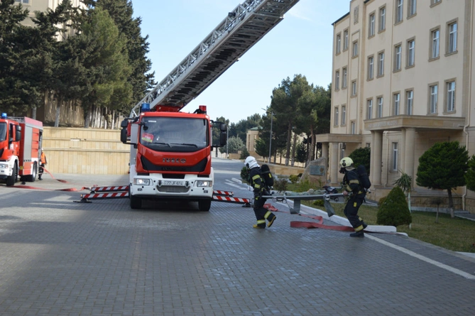 BAKU.WS xəbər verir ki, təlimə FHN-in Dövlət Yanğın Nəzarəti və Dövlət Yanğından Mühafizə xidmətlərinin müvafiq canlı qüvvə və texnikası cəlb edilib.
