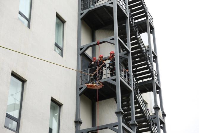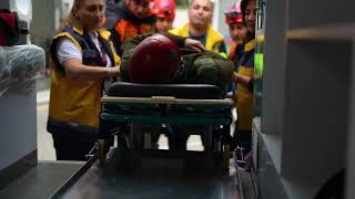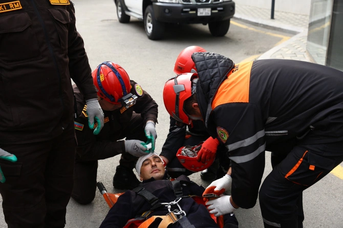 Təlimin praktiki hissəsində isə baş vermiş şərti zəlzələ ilə əlaqədar "Həyəcan" siqnalı verildikdən sonra 6 saylı Bakı "ASAN xidmət" mərkəzinin əməkdaşlarının təxliyə planına uyğun olaraq təhlükəsiz yerə təxliyəsi həyata keçirilib, Bakı Regional Mərkəzinin xilasediciləri operativ qaydada "hadisə yerinə" çataraq "zərərçəkmişlərin" təhlükəsiz yerə təxliyəsini həyata keçirib, şərti xəsarət almış şəxslərə "ilkin yardım göstəriblər".