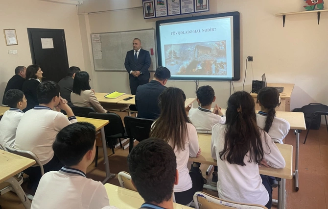 Tədbirlərdə fövqəladə halların təsnifatı, ölkəmiz üçün xarakterik olan fövqəladə hallar, o cümlədən yanğın və zəlzələ ilə bağlı zəruri davranış qaydaları barədə ətraflı məlumat verilib, FHN-in "112" qaynar telefon xəttinin təyinatı izah olunub və ilkin yanğınsöndürmə vasitələrindən istifadə qaydaları əyani şəkildə nümayiş etdirilib.