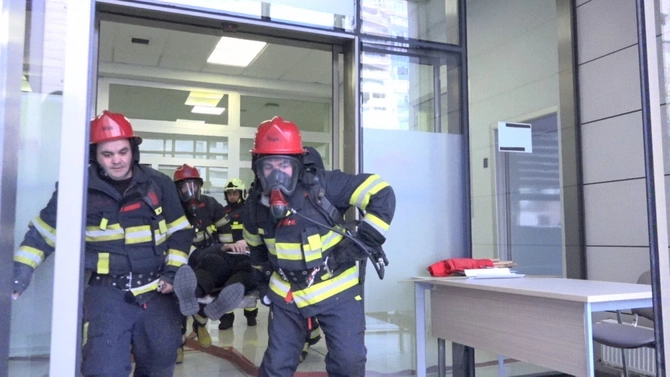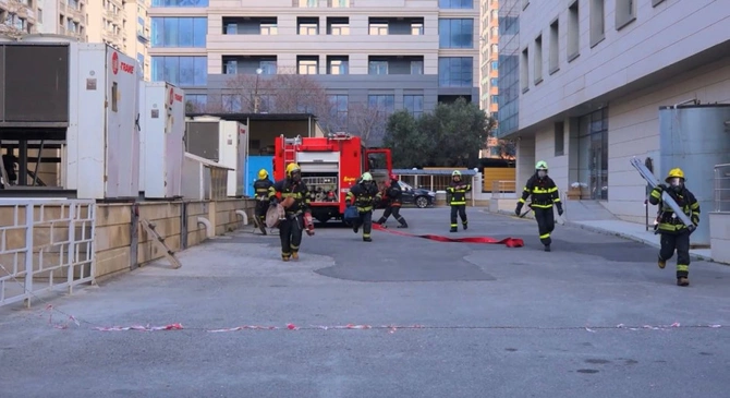 Təlimin praktiki hissəsində şərti yanğınla əlaqədar "Həyəcan" siqnalı verildikdən sonra Dövlət Yanğından Mühafizə Xidmətinin yanğından mühafizə bölmələri operativ qaydada "hadisə yerinə" çataraq, "yanğınla mübarizə" tədbirlərinə başlayıblar. Şərti yanğın baş vermiş səhiyyə müəssisəsində təxliyə planına uyğun olaraq vətəndaşların təhlükəsiz yerə təxliyəsi həyata keçirilib, şərti xəsarət almış şəxslərə "ilkin yardım göstərilib" və "yanğın qısa müddətdə söndürülüb".
