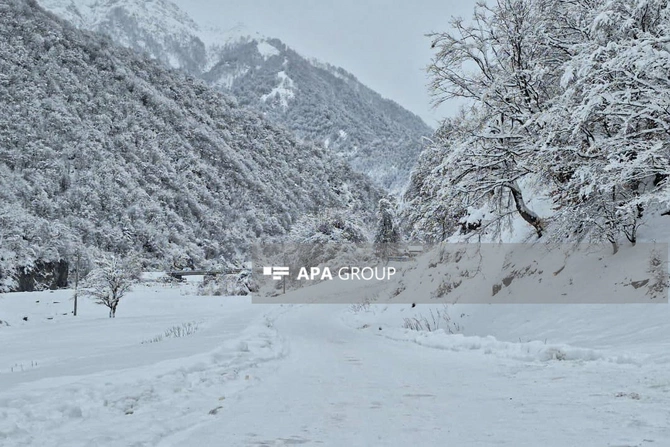 İki gündür yağan qar Qəbələ rayonunda dağlıq kəndlərə gediş-gəlişi çətinləşdirib.