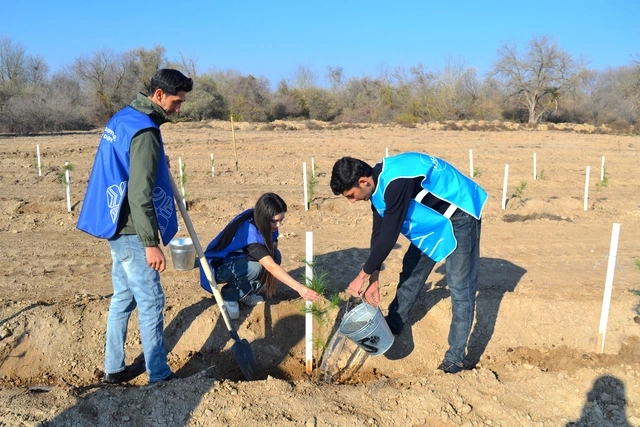 BAKU.WS xəbər verir ki, IDEA İctimai Birliyinin könüllülərinin iştirakı ilə Bərdə rayonunda 600-dən çox Eldar şamı ağacı əkilib.