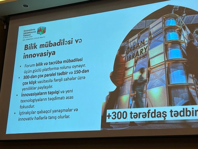 17-22 may 2026-ci il tarixlərində Bakıda keçiriləcək Ümumdünya Şəhərsalma Forumunun 13-cü sessiyasına (WUF13) hazırlıq çərçivəsində media nümayəndələri üçün WUF13 Azərbaycan Əməliyyat Şirkətinin və Azərbaycan Respublikasının Medianın İnkişafı Agentliyinin (MEDİA Agentliyi) birgə təşkilatçılığı ilə "WUF13: Dayanıqlı şəhərsalmanın inkişafı və medianın rolu" mövzusunda məlumatlandırma sessiyası keçirilib.