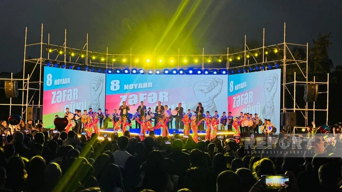 BAKU.WS report-a istinadən xəbər verir ki, konsertdə tanınmış ifaçılar tərəfindən qələbə ovqatlı mahnılar səsləndirilib, vətənpərvərlik ruhunda kompozisiyalar nümayiş etdirilib, rəqs qruplarının rəngarəng çıxışları olub. Bayram tədbiri saat 18:00-da başlayıb və 3 saat davam edib. Sonda möhtəşəm atəşfəşanlıq olub.