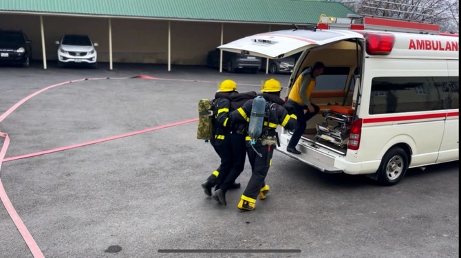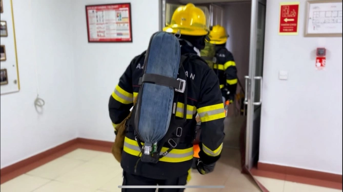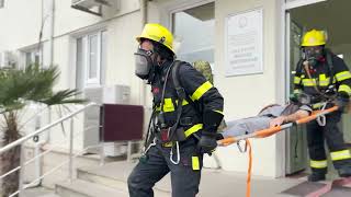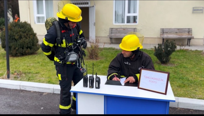 Belə ki, şərti yanğın zamanı "həyəcan" siqnalı verildikdən sonra FHN-in yanğın-xilasetmə bölmələri operativ qaydada hadisə yerinə çataraq xəstəxananın müvafiq personalı ilə əlaqəli şəkildə obyektin təxliyə planına uyğun insanların təhlükəsiz yerə təxliyəsini həyata keçirib, paralel olaraq "yanğınla mübarizə" tədbirləri yerinə yetirilib, habelə şərti xəsarət almış şəxslərə "ilkin yardım göstərilib".