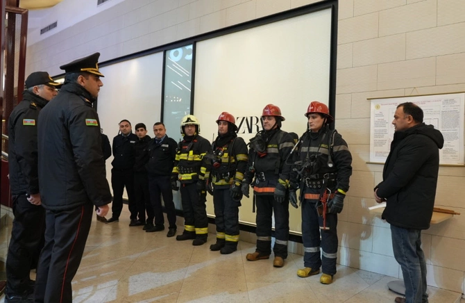 Fövqəladə Hallar Nazirliyinin Dövlət Yanğından Mühafizə Xidməti Bakı şəhəri, Nəsimi rayonu, Nizami küçəsi, 60 ünvanında fəaliyyət göstərən "Nərgiz" Ticarət Mərkəzində "Fövqəladə hallar zamanı davranış qaydaları və təxliyə" mövzusunda təlim keçirib.