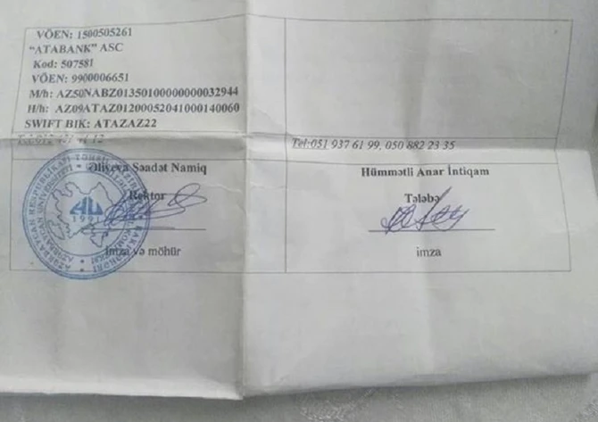Təhsil haqqını ödəməyə imkanı çatmadığı üçün universitetdən xaric olunan gənc “femida.az”a müraciət edib.BAKU.WS xəbər verir ki, Ucar rayonu, Bərgüşad kənd sakini Anar Hümmətlinin sözlərinə görə, 2013-cü ildə Asiya Universitetinə qəbul olunub. 2015-ci ildə həmin universitet bağlandıqdan sonra Təhsil Nazirliyinin xətti ilə tələbələr Azərbaycan Universitetinə köçürülüb.Ailənin maddi vəziyəti çətin olduğundan Anar Hümmətlinin təhsilində iki dəfə fasilə yaranıb. “Tarix fakültəsinin tələbəsiyəm. 2017- ci ilin yanvarından təhsil haqqını ödəməyə imkanım çatmadığından təhsilimi dayandırdım. Bakıda anam və bacımla birgə kirayədə yaşayırıq.Ailəmizi dolandırmaq üçün restoranda ofisiant işləyirəm. Bu qazancla illik 2500 manat təhsil haqqını ödəməyə gücüm çatmır. Universitetdə təhsildən, davranışdan çox razıyam.Burada oxuyan tələbə heç bir maneə ilə qarşılaşmır. Mənim problemim təhsil haqqı borcumla bağlıdır. Əvvəlki illərin təhsil haqqını qohumların, yaxşı insanların köməkliyi ilə ödədik.İndi sonuncu kursdayam. Universitetə 3818 manat təhsil haqqı borcum var. Bunu ödəyə bilmədiyim üçün dərslərə buraxılmıram. 2019-cu ilin fevralından mənə xəbərdarlıq edilmədən universitetdən xaric edildim. Tələbə krediti götürmək istəyirdim.Bizim Universitet həmin şəbəkəyə qoşulmadığı üçün o xidmətdən istifadə edə bilmədim. Təhsilə, gənclərə önəm verən şəxslərdən xahiş edirəm ki, mənim təhsil haqqımın ödənilməsinə kömək etsinlər.Mətbuatda tez-tez Mehriban xanım Əliyevanın humanist addımlarını görürüəm. Ümid edirəm ki, mənə də kömək olacaq. Universitetə daxil olmaq üçün çox əziyyət çəkmişəm. Arzum odur ki, bitirəm və Tarix müəllimi işləyəm".Gəncə kömək etmək istəyən şəxslər üçün məlumatları təqdim edirik:VÖEN: 1500505261ATABANK ASCVÖEN 9900006651M/h AZ50 NA BZ013 501 000 000 000 32944M/h AZ 09ATAZ 012 000 520 410 001 400 60SWIFT BIK ATAZAZ 22Tələbə: Hümmətli Anar İntiqam oğlu Əlaqə nömrəsi: 0508822335