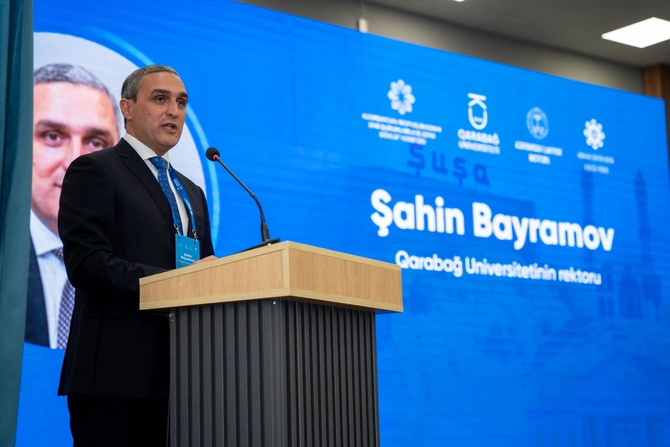Qarabağ Universitetinin Filologiya kafedrasının müdiri, filologiya elmləri doktoru Əzizağa Nəcəfov "Qarabağın təhsil tarixi və Qarabağ Universiteti təhsilimizin yeni mərhələsi kimi" mövzusunda çıxış edib. O, Qarabağda təhsilin tarixi köklərindən, işğal dövründə itirilən mənəvi və elmi potensialdan, eyni zamanda Qarabağ Universitetinin bu boşluğu doldurmaqda oynadığı roldan danışıb.