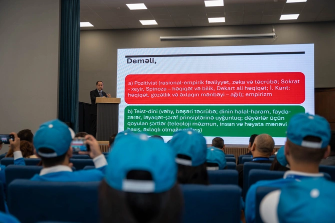 Azərbaycan İlahiyyat İnstitutunun müəllimi, fəlsəfə üzrə fəlsəfə doktoru, dosent Elvüsal Məmmədov isə "Mənəvi dəyərlər: fərdi və sosial həyatda əhəmiyyəti və funksiyaları" mövzusunda mühazirə ilə çıxış edib. Məruzədə fərdi inkişafda mənəvi prinsiplərin rolu və onların cəmiyyət həyatında təsirləri təhlil olunub.