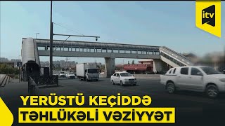 Bakı şəhərinin Sabunçu rayonunda yerləşən yerüstü piyada keçidinin alt hissəsində olan panellər qoparaq təhlükə mənbəyinə çevrilib.