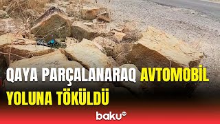Şamaxı-Qızmeydan yolunun altıncı kilometrliyində baş verən sürüşmə nəticəsində qayadan qopan iri daş parçaları yol kənarına tökülüb.