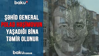 Şəhid General Polad Həşimovun yaşadığı bina təmir olunur - VİDEO