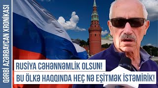 Qərbi Azərbaycan Xronikası layihəsi çərçivəsində sənətşünaslıq üzrə fəlsəfə doktoru Elçin Əlibəylinin təqdimatında “Rusiya cəhənnəmlik olsun, bu ölkə haqqında heç nə eşitmək istəmirik” adlı süjet efirə gedib.