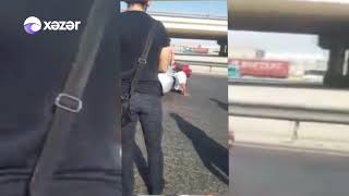 Bakıda taksi sürücüləri arasında müştəriyə görə dava - özünü maşının qarşısına atdı (VİDEO)