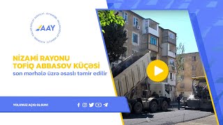 Azərbaycan Avtomobil Yolları Dövlət Agentliyi Bakının Nizami rayonundakı Tofiq Abbasov küçəsini son mərhələ üzrə əsaslı təmir edir.