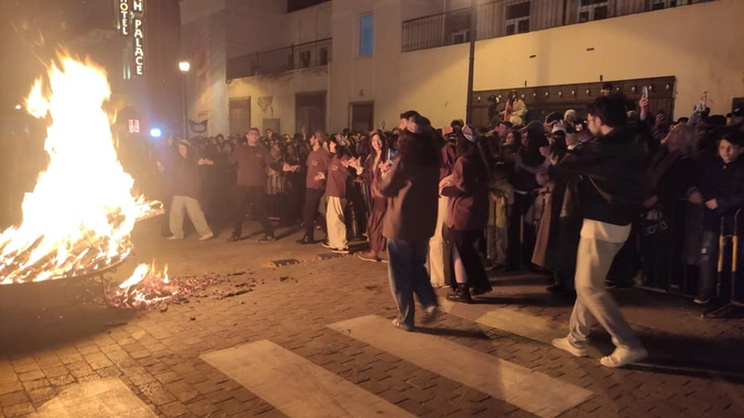 İçərişəhərdə təntənəli bayram tonqalı qalanıb